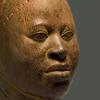 Responding to Rem’s request, here is an image of one of the heads of Ife currently in a show at the British Museum. For anyone who’s read the Stone Dance, it will be obvious why these would appeal to me. Exquisite works of art, these could easily be the pattern for the masks of the Masters. What is rather darkly amusing is that, when they were discovered, it was decided that these sculptures, as well as the more famous ones from Benin, could not possibly have been made by Africans – the heads were, after all, not only made of metal, but artistically at least as accomplished as anything made by the Greeks or Romans. The usual litany of fanciful attributions were made to explain their origins: a lost tribe of Israel, some wandering Roman army, some Greeks merchants who had gone astray, alien visitation yada yada yada.