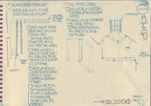 Ancient halls underlie the Halls of Thunder that once performed the same role as the new halls above, that include the addition of the Encampment of the Seraphim (that is shown superimposed on the plan and labelled “Hall of Wings”), the Chamber of the Three Lands etc. It is these halls that Carnelian reaches by descending from the Hall of the Sun in Splendour in the Sunhold, so encountering the Moon-Eyed Door